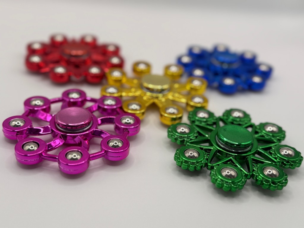 Juguete pequeño pero muy potente para aliviar el estrés y la ansiedad. Está hecho de plástico y contiene ruedas giratorias que se pueden hacer girar con la mano.
